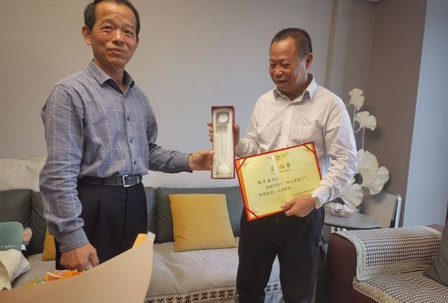 慰问“舟山慈善人”沈华忠船长10月20日下午,岱山县慈善总会副会长张景达一行来到沈船长家,慰问这位见义勇为的“好人”船长,由衷地向他表达舟山市、县慈善总会的敬意和慰问,并送上今年获评的舟山市“舟山慈善人”奖状、奖杯。来源:岱山县慈善总会 2024-10-22 -
