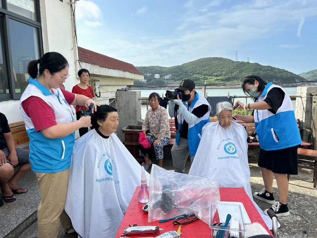 柴山岛是普陀区白沙岛管委会管辖的一个悬水小岛。交通很不方便,岛上居住的都是不愿跟随子女进城的留守老年人。他们不仅文化活动匮乏,购物、理发等也十分不便。对此,普陀区网络义工协会的慈善志愿者定期或不定期地会安排到柴山岛等交通不便的悬水小岛开展敬老服务活动,有效解决偏远小岛老年人理发不方便等困难问题。