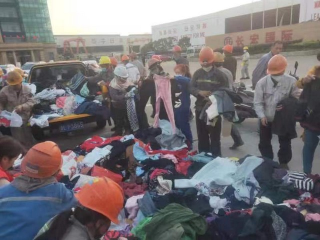 寒流来袭,气温骤降,10月18日下午,在长宏国际普陀小干岛分公司大门前,却是另一番景象,处处充满着暖意。舟山市普陀区大干新居民慈善志愿服务队的慈善志愿者,送到这里的近千件御寒旧衣服,被这里陆续下班、衣着单薄的船厂工人们挑选一空。
