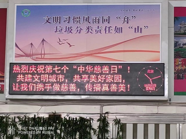 热烈庆祝第七个“中华慈善日”!慈源于爱,善重在行,让我们携手做慈善,传播真善美!--9月5日这天,舟山市企事业单位所有干部职工都收到了这条信息,这也是第七年在中华慈善日收到舟山市慈善总会发布的宣传信息了,许多人从不知道中华慈善日到熟悉中华慈善日,可以说小小的短信发挥了很大的宣传作用。与此同时,舟山市慈善总会还开展了形式新颖多样、特色鲜明的慈善活动。主要包括:舟山广电五位主持人以每人一句慈善宣传口号齐亮相;在市内公共区域大屏幕及车站循环播放第七个“中华慈善日”宣传语;社区(村)张贴“中华慈善日”公益宣传横幅;在市长峙岛的摩天轮进行“中华慈善日”公益宣传灯光秀等。