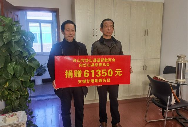 岱山县社会各界为甘肃灾区捐款1月4日,岱山县基督教协会负责人毛奇峰一行人,带着61350元现金,来到了岱山县慈善总会财务室,将基督教众的浓浓爱心交付给总会,专项用于甘肃省林夏州积石山县的赈灾。来源:岱山县慈善总会 2024-01-12 -