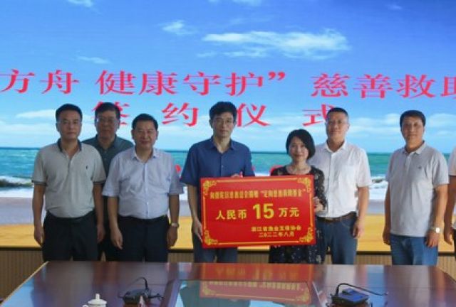 浙江省渔业互保协会助力普陀“共富方舟﹒健康守护”8月4日下午,浙江省渔业互保协会与舟山市普陀区慈善总会在普陀区海洋与渔业局举行“共富方舟﹒健康守护”慈善救助基金签约仪式,省渔业互保协会向普陀区慈善总会捐赠15万元,助力普陀“共富方舟﹒健康守护”行动。来源:舟山市普陀区慈善总会 2022-08-08