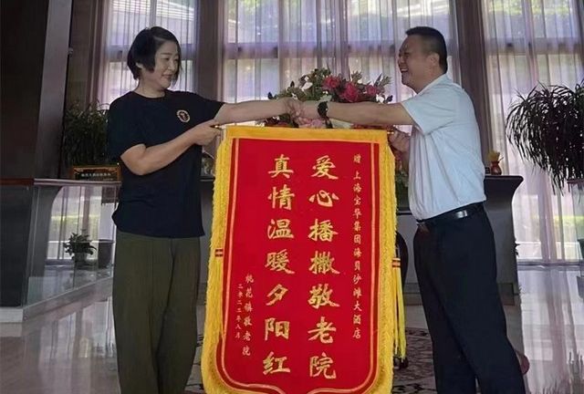 舟山海贝沙滩大酒店15台彩电送桃花镇敬老院8月11日,舟山市普陀区桃花镇慈善分会将一面绣有“爱心播撒敬老院,真情温暖夕阳红”的锦旗,赠送到位于桃花岛塔湾的上海宝华集团海贝沙滩大酒店,感谢爱心企业赠予桃花镇敬老院15台电视机,为老年人的日常生活增添乐趣。来源:舟山市普陀区慈善总会 2022-08-12 -