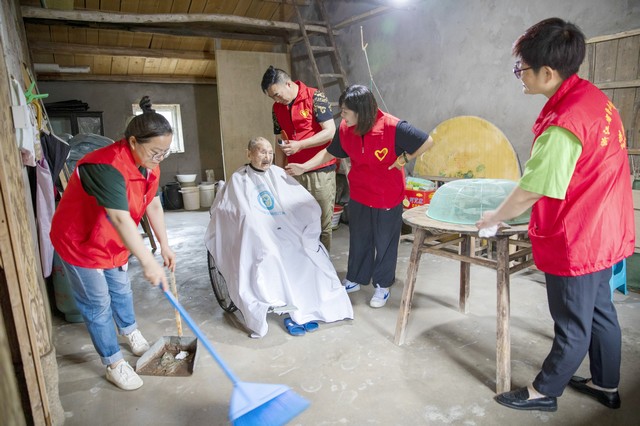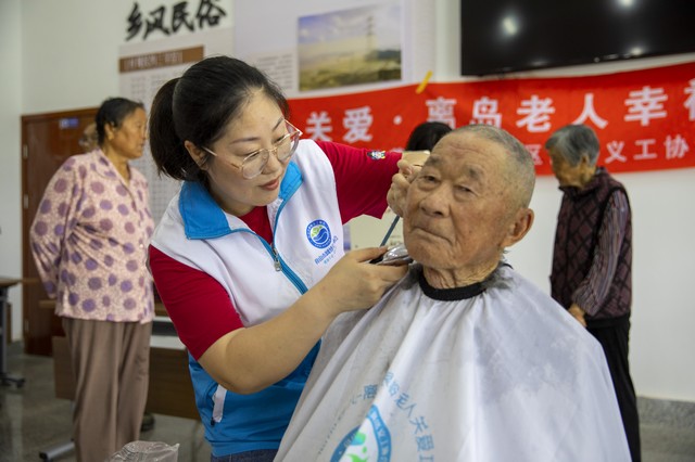 这是普陀区慈善义工分会网络义工协会7年来爱心接力第59次进入登步竹东村为海岛老人服务,也是普陀区慈善总会推行的“暖心关爱·离岛老人幸福守护”项目的一个缩影。“村里有行动不便的高龄独居老人,慈善志愿者们就开展上门服务,为行动不便的老年人理发、洗头、陪聊天,并帮他们整理房间、打扫卫生。”普陀区慈善义工分会网络义工协会负责人“阿月哥哥”说。