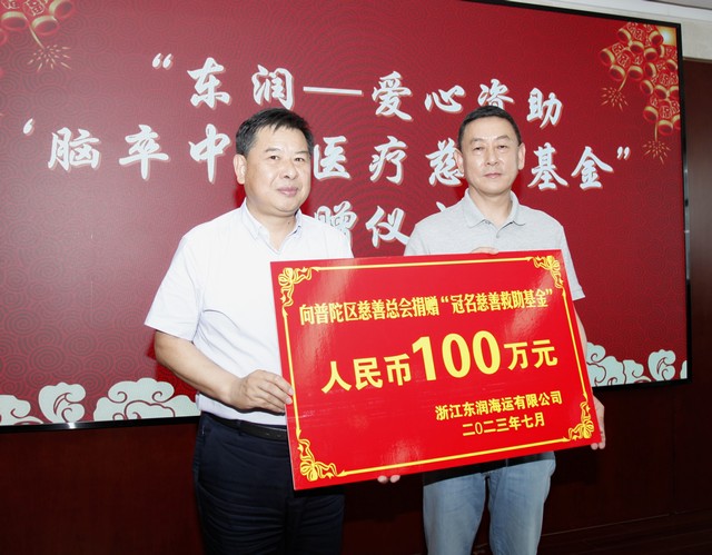 浙江东润海运有限公司主营国内沿海及长江中下游化学品船、油船运输。2021年度,该公司捐赠50万元建立“东润爱心助行慈善基金”,定向用于在普陀医院实施髋关节、膝关节置换的普陀困难群体,给予一次性最高不超过3000元的救助。这一次“东润—爱心资助‘脑卒中’医疗慈善基金”是该公司冠名慈善救助基金再加码的一次具体行动。